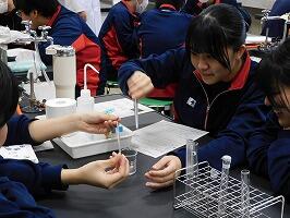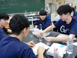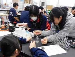 令和7年12月1日(月) 3年次化学で「合成繊維の合成」「金属の沈殿」の実験をしました。