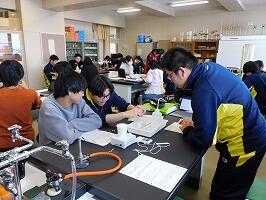 令和8年1月30日(金) 2年次化学で「反応エンタルピーとヘスの法則」の実験をしました。