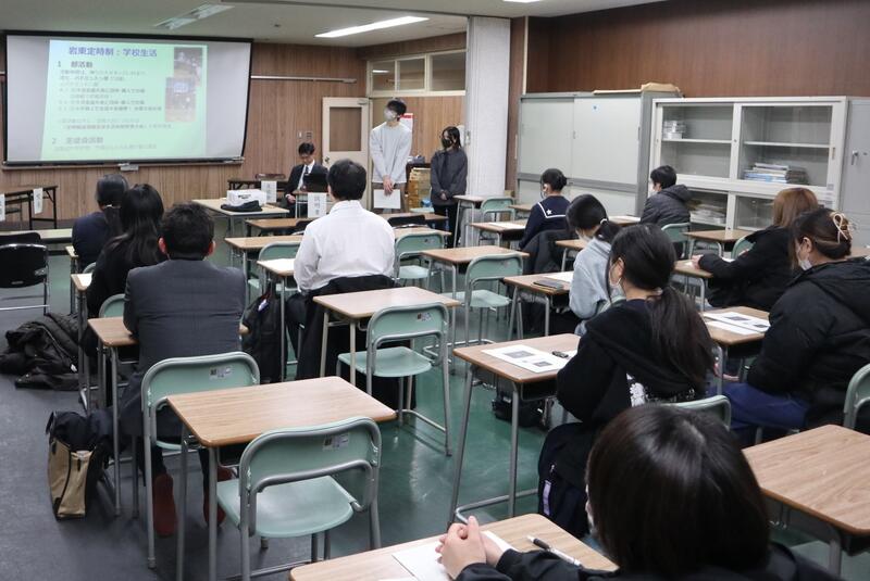 生徒会長の挨拶と生徒会による岩東定時制の紹介、各学年の紹介、そして先生方の紹介と、みんなで楽しいひとときを過ごしました。