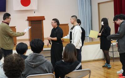 生徒会長の挨拶と生徒会による岩東定時制の紹介、各学年の紹介、そして先生方の紹介と、みんなで楽しいひとときを過ごしました。